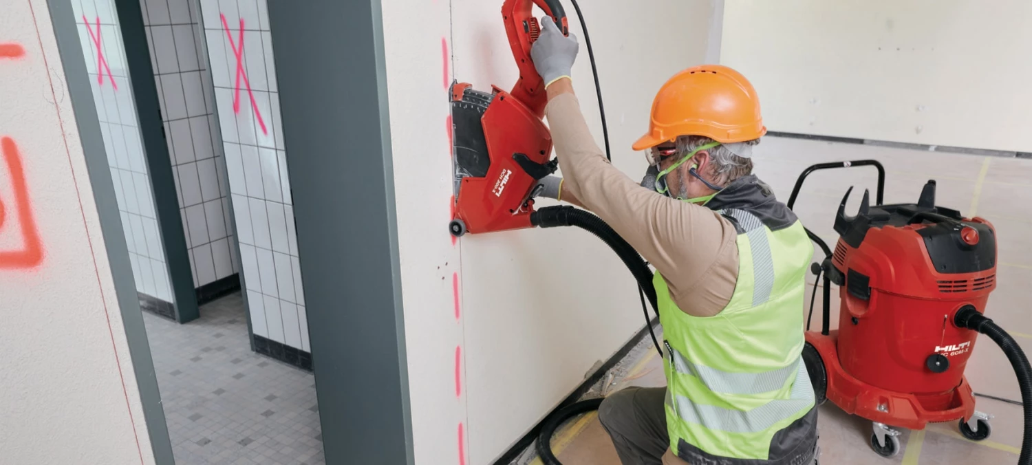 Aspiration de la poussière de forage, découpe, ponçage, rainurage et carottage à sec