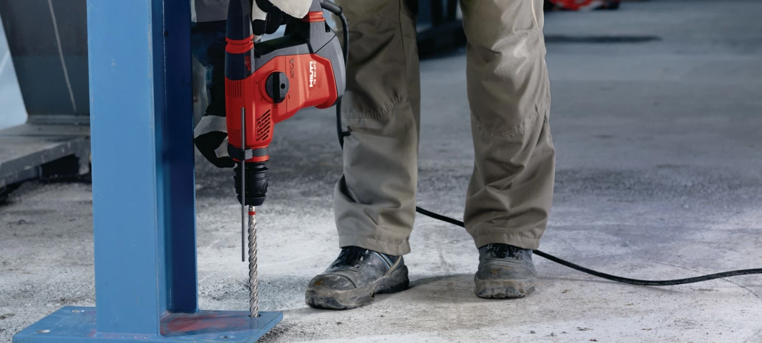 Perçage de trous pour le chevillage et transpercements dans le béton et la maçonnerie ; plage de diamètres : 4 à 28 mm ; plage de diamètres recommandée : 10 à 20 mm